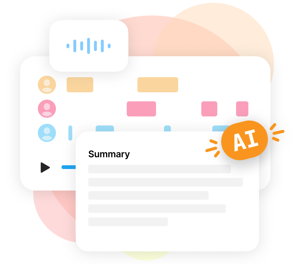 See and hear team conversing in real time or play back the recording later. Join a live meeting or read the transcription later. All calls are recorded and transcribed automatically & AI Summary is created for each video and audio meeting using OpenAI.
