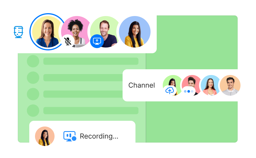 Any member of a channel can start a live, audio-only, text or video discussion that any channel member can join. Channels can be setup for any topic or department and be private for a group of individuals or publicly accessible by the entire team. Channels are dedicated spaces within a team where the actual work gets done. Think of channels as dedicated conference rooms that are either public or private.